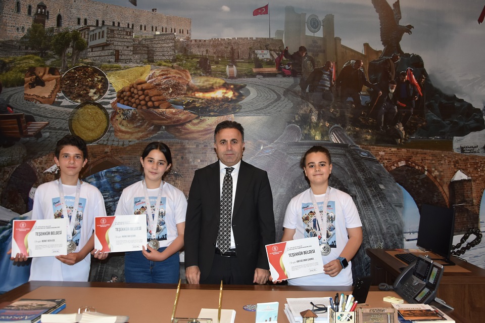 İl Müdürümüz Ahmet Yer, öğrencilerimizi tebrik ederek teşekkür belgesi ve hediyeler taktim etti.
