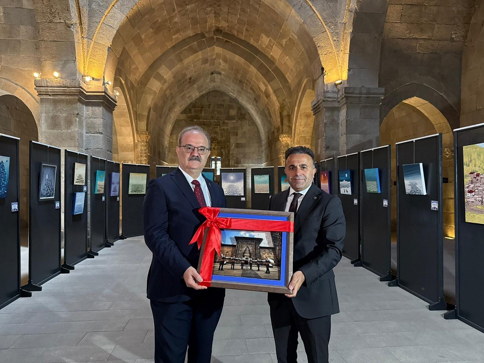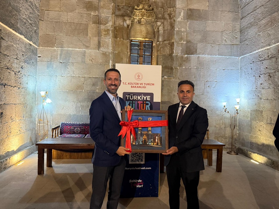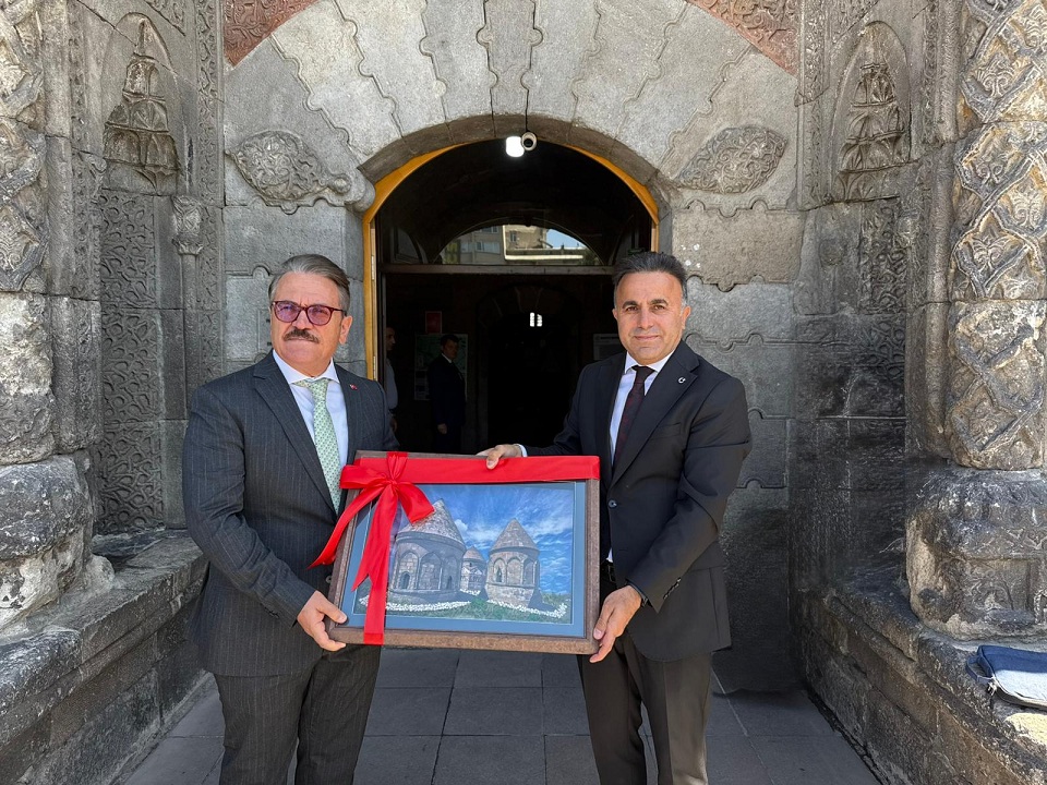 İl Kültür ve Turizm Müdürümüz Ahmet Yer Kültürel mirasımızın ve sanatın önemine vurgu yaparak Yakutiye Medresesinde Bakan Yardımcımız Sayın Dr. Serdar Çam'a, Genel Müdürlerimiz Sayın Selim Terzi ve Sayın Ömer Faruk Berlivanlı' ya hediye taktim etti.