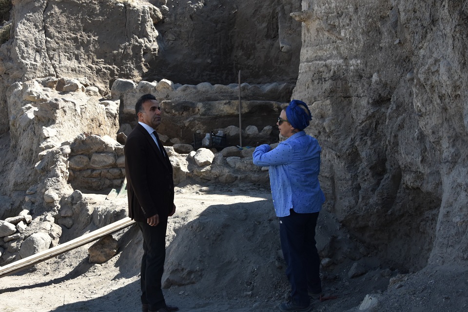 İl Müdürü Yer Değirmenler Höyük kazı alanında incelemelerde bulundu. -
