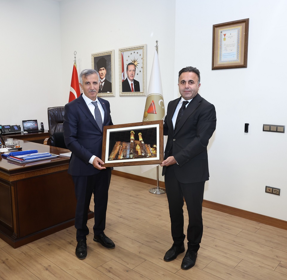 Ziyaret kapsamında İl Müdürü Yer, Vali Ünlüer’e Erzurum’un tarihi ve kültürel değerlerini yansıtan özel bir Erzurum hatırası takdim etti.