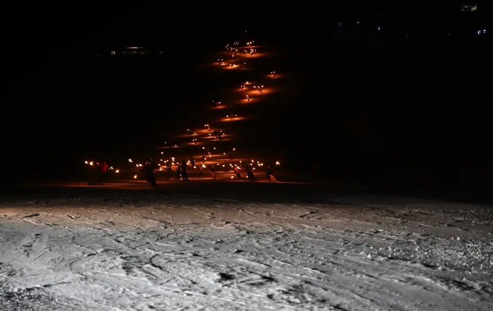 İl Kültür ve Turizm Müdürü Ahmet Yer'in katılım sağladığı program, ledli ve meşaleli kayakçı gösterileriyle devam ederken, “Palandöken Ejder 3200” yazısının meşalelerle yakılmasıyla 2025–2026 kayak sezonu görsel bir şölen eşliğinde resmen açıldı.