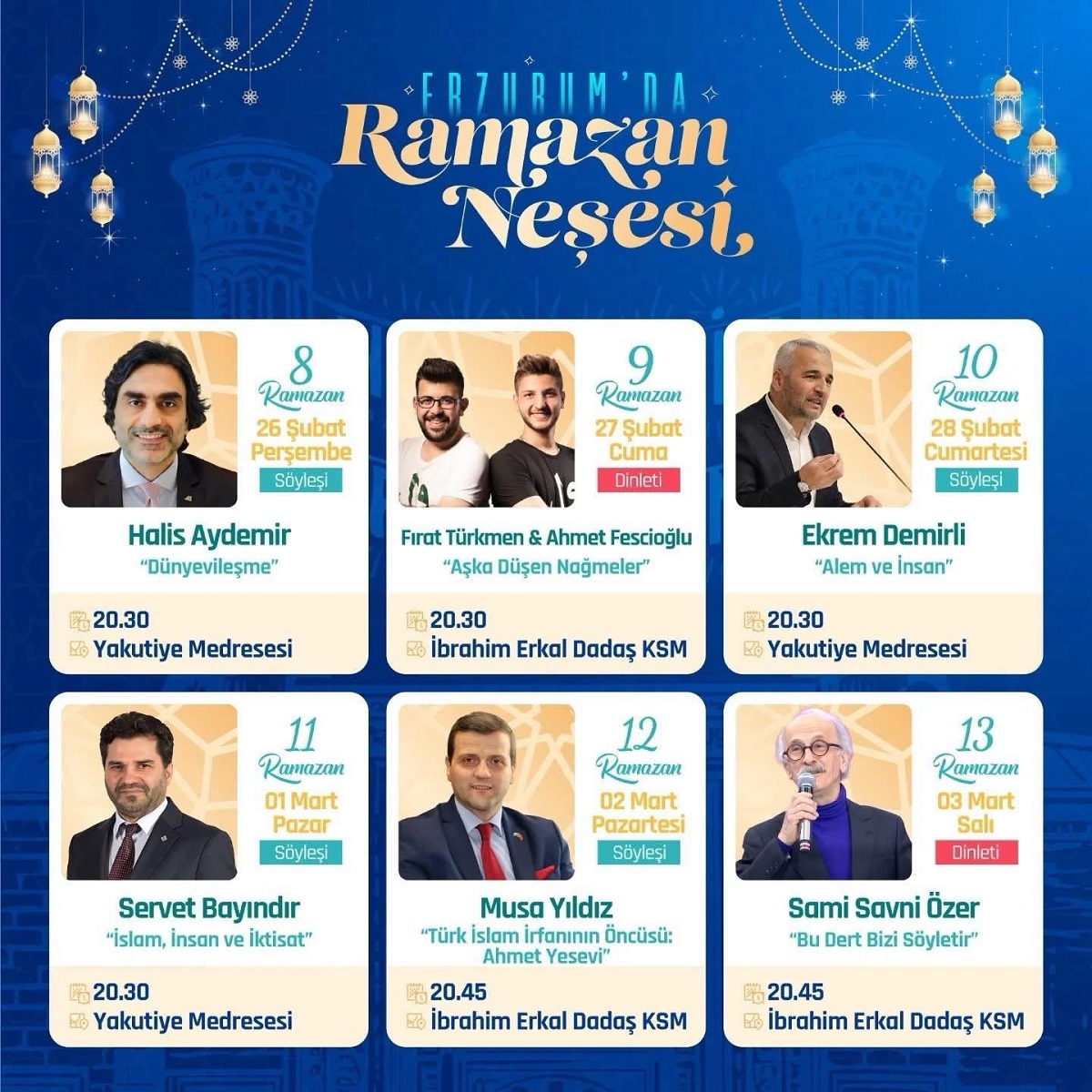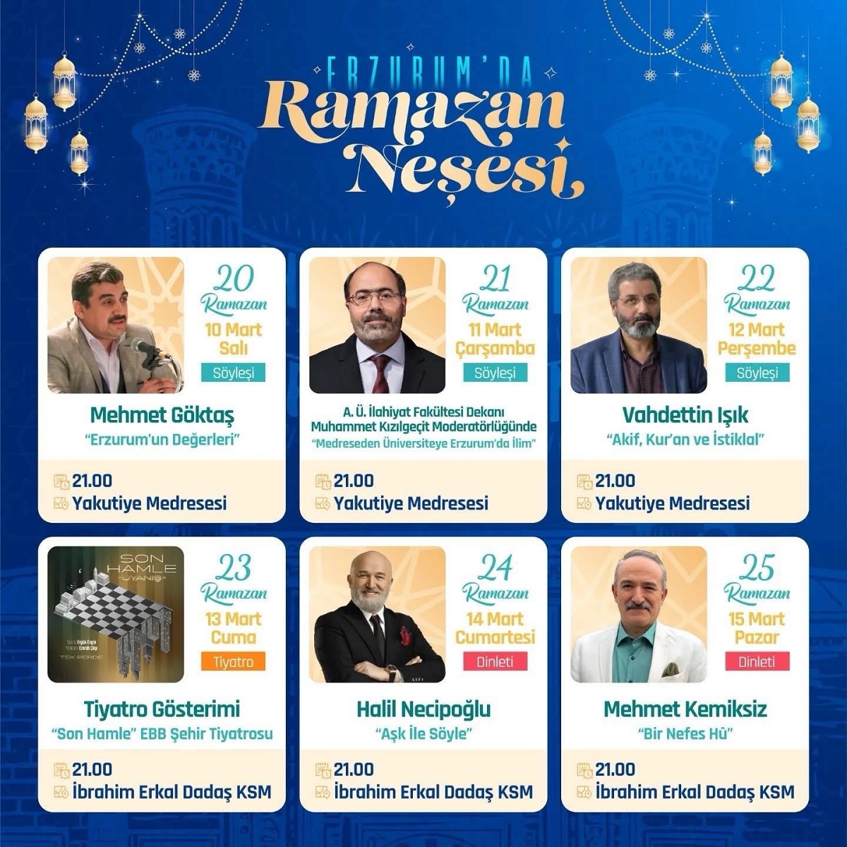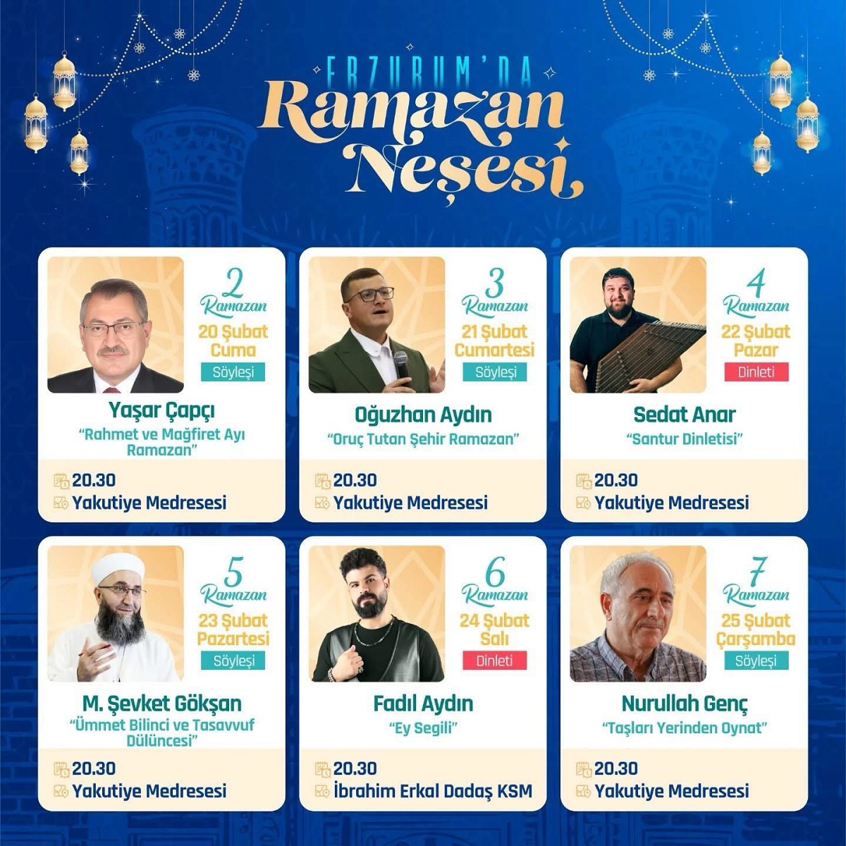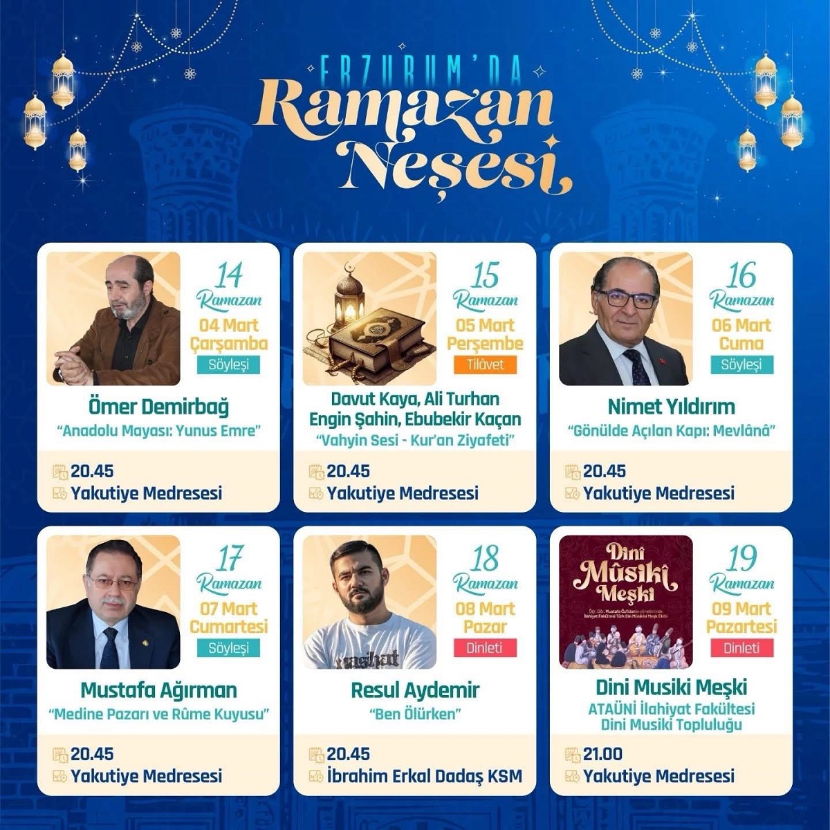 "Erzurum'da Ramazan Neşesi" Programları Etkinlik Takvimi -